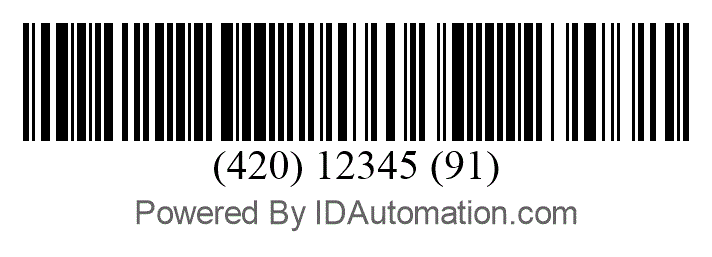 The HR (human-readable text under the barcode) shows (420)12345(91):